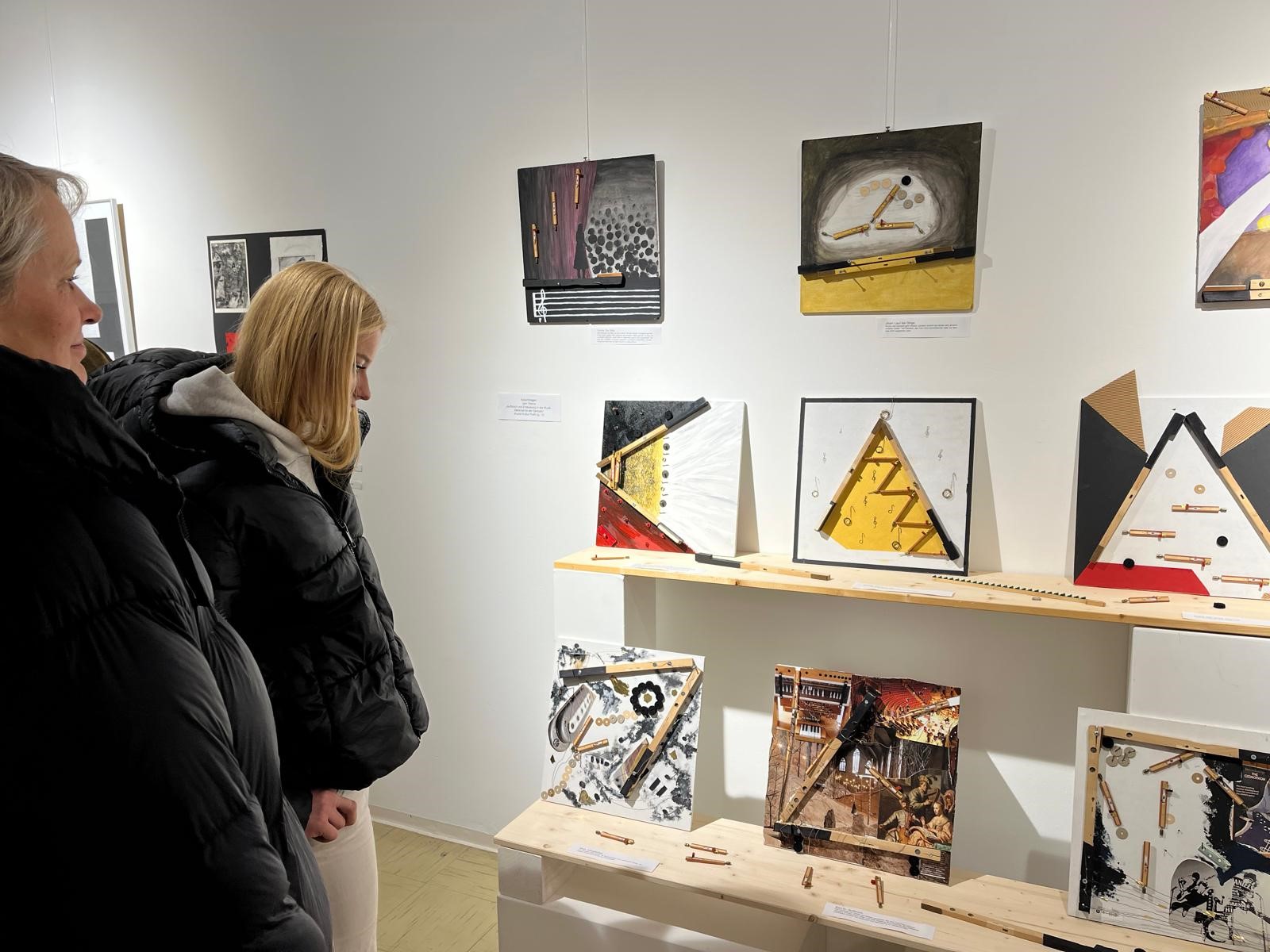 Die Schülerinnen und Schüler sind zu Recht stolz auf ihr Ergebnis, das in dem schönen Galerieraum des KulturWerks einen recht professionellen Eindruck macht. Dazu werden auch noch Rechner aufgestellt werden, auf denen Eigenkompositionen zu hören und eigene Architekturfilme zu sehen sein werden.